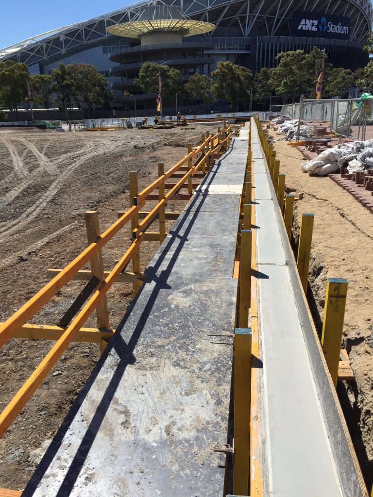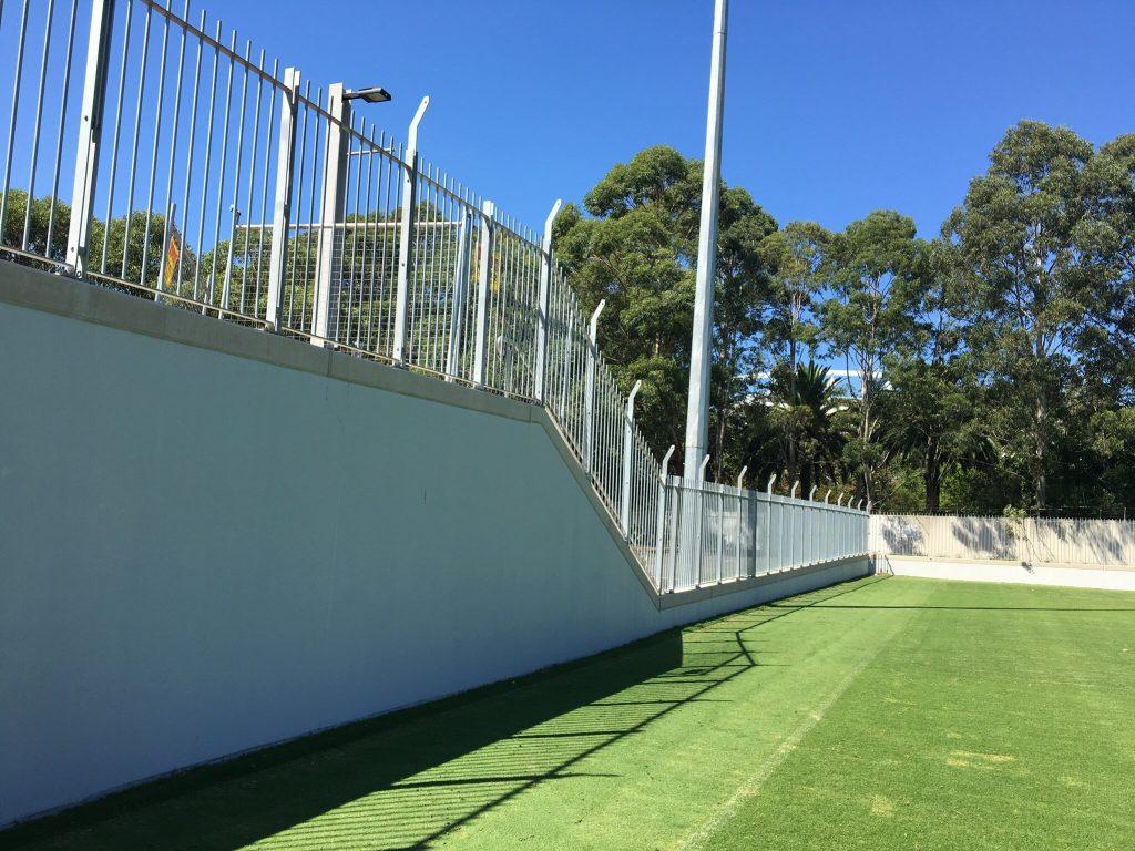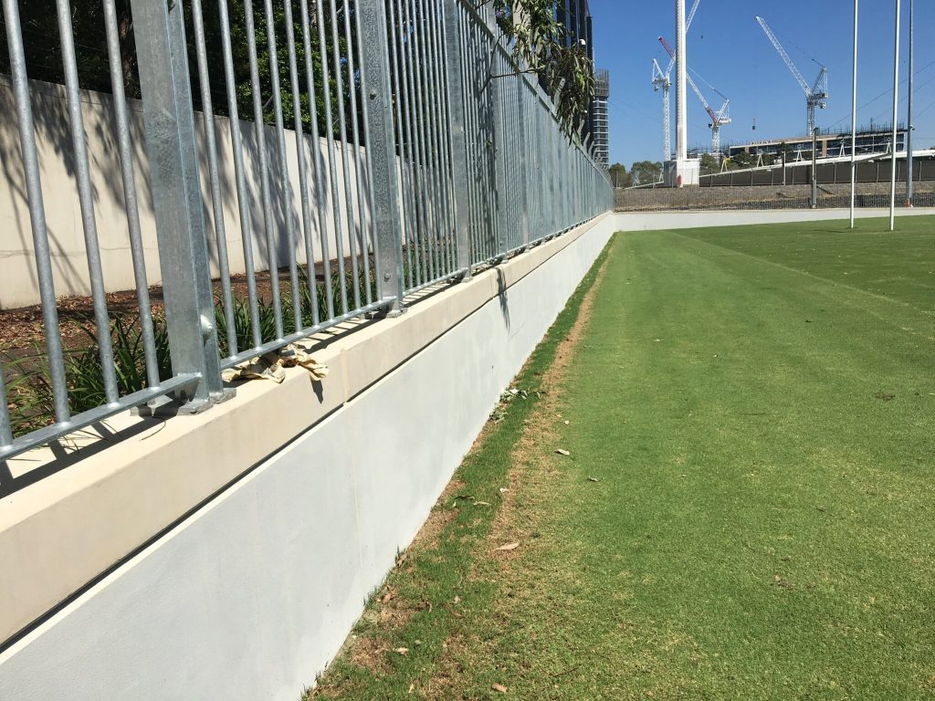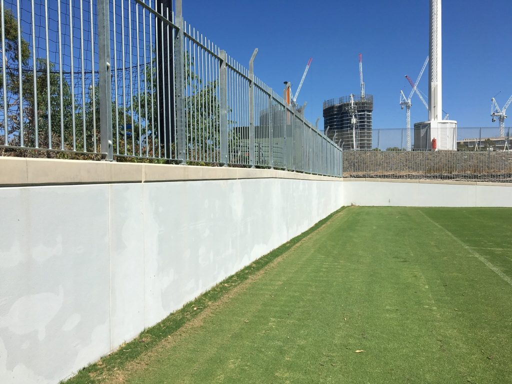 Endacom was engaged to construct a surrounding / containg wall around the Sydney park recreational playing fields to separate the games from the public walkways and industrial build up and rail network .