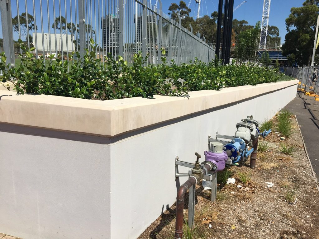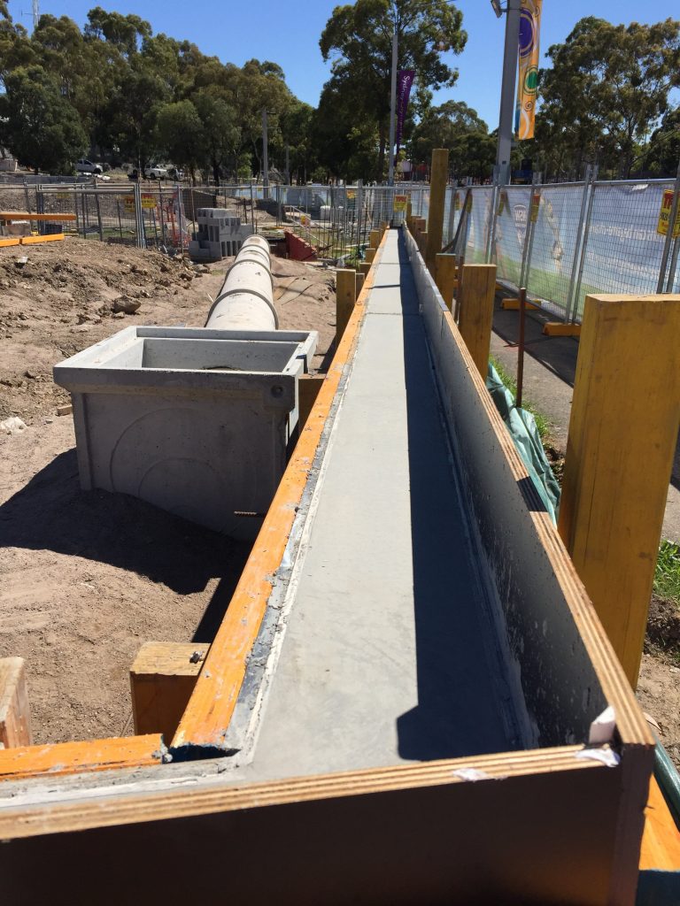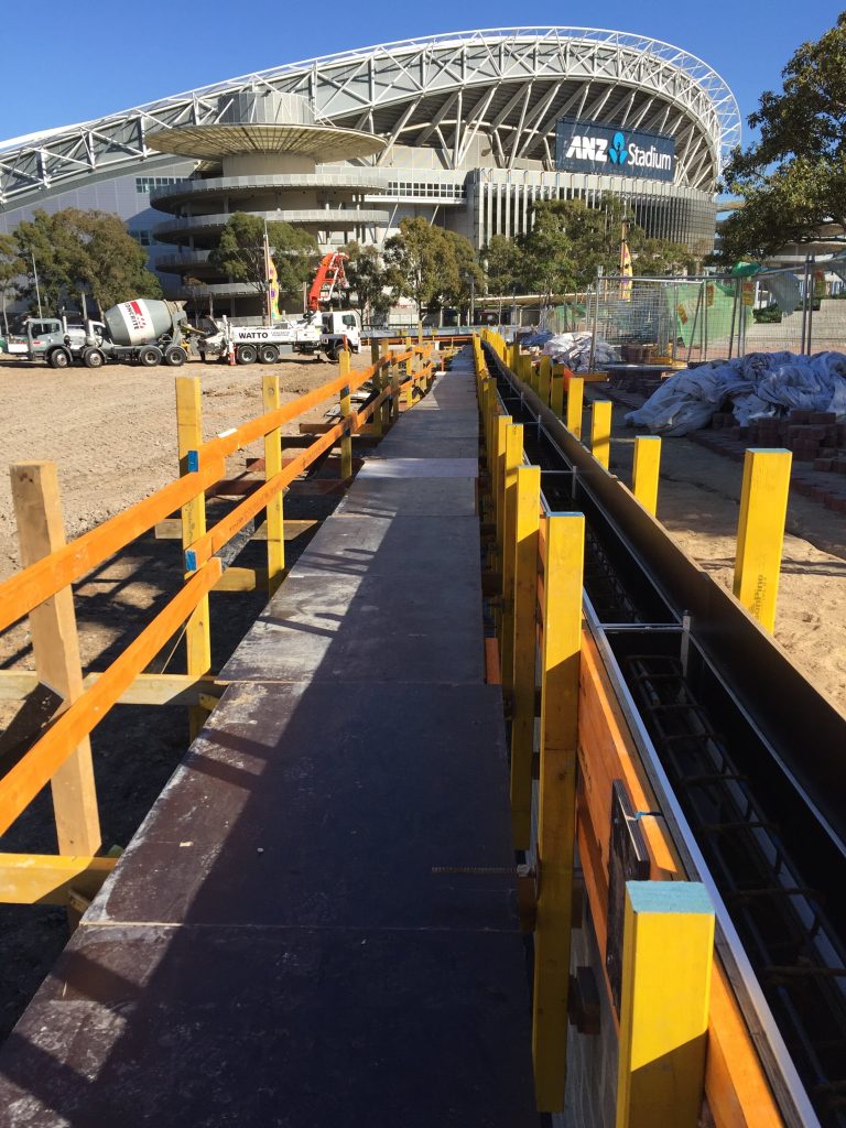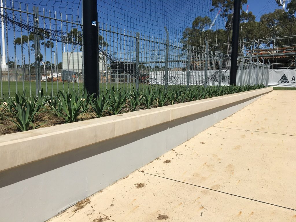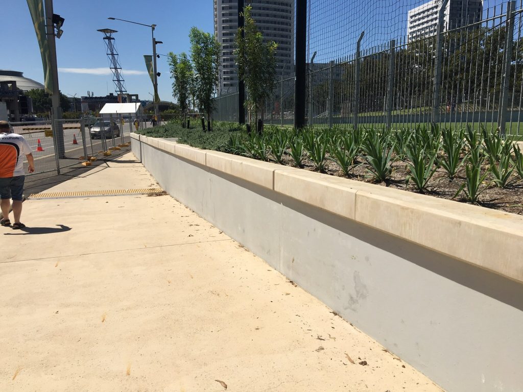 Endacom was engaged to construct a surrounding / containg wall around the Sydney park recreational playing fields to separate the games from the public walkways and industrial build up and rail network .